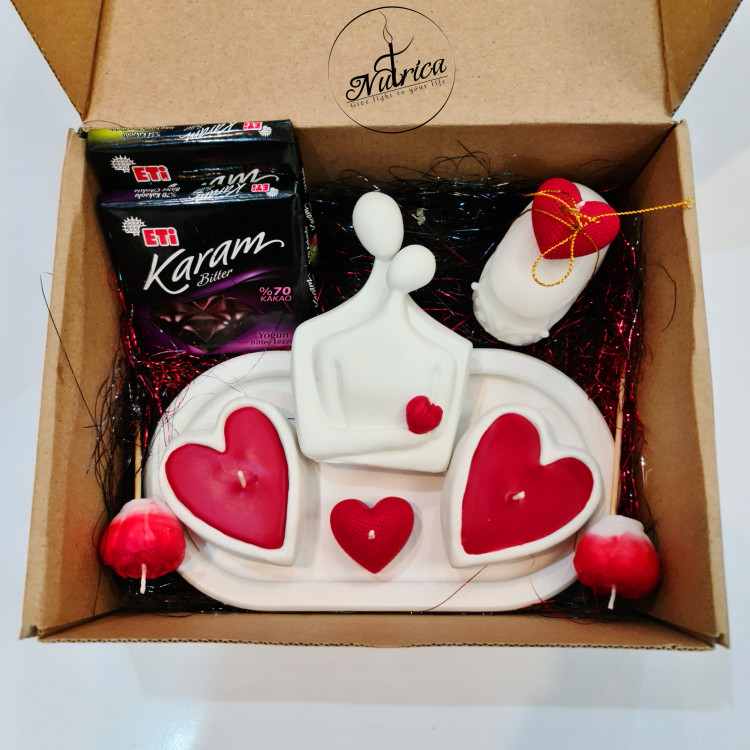 پک هدیه ولنتاین شامل شمع قلب سنگی و مجسمه آغوشی