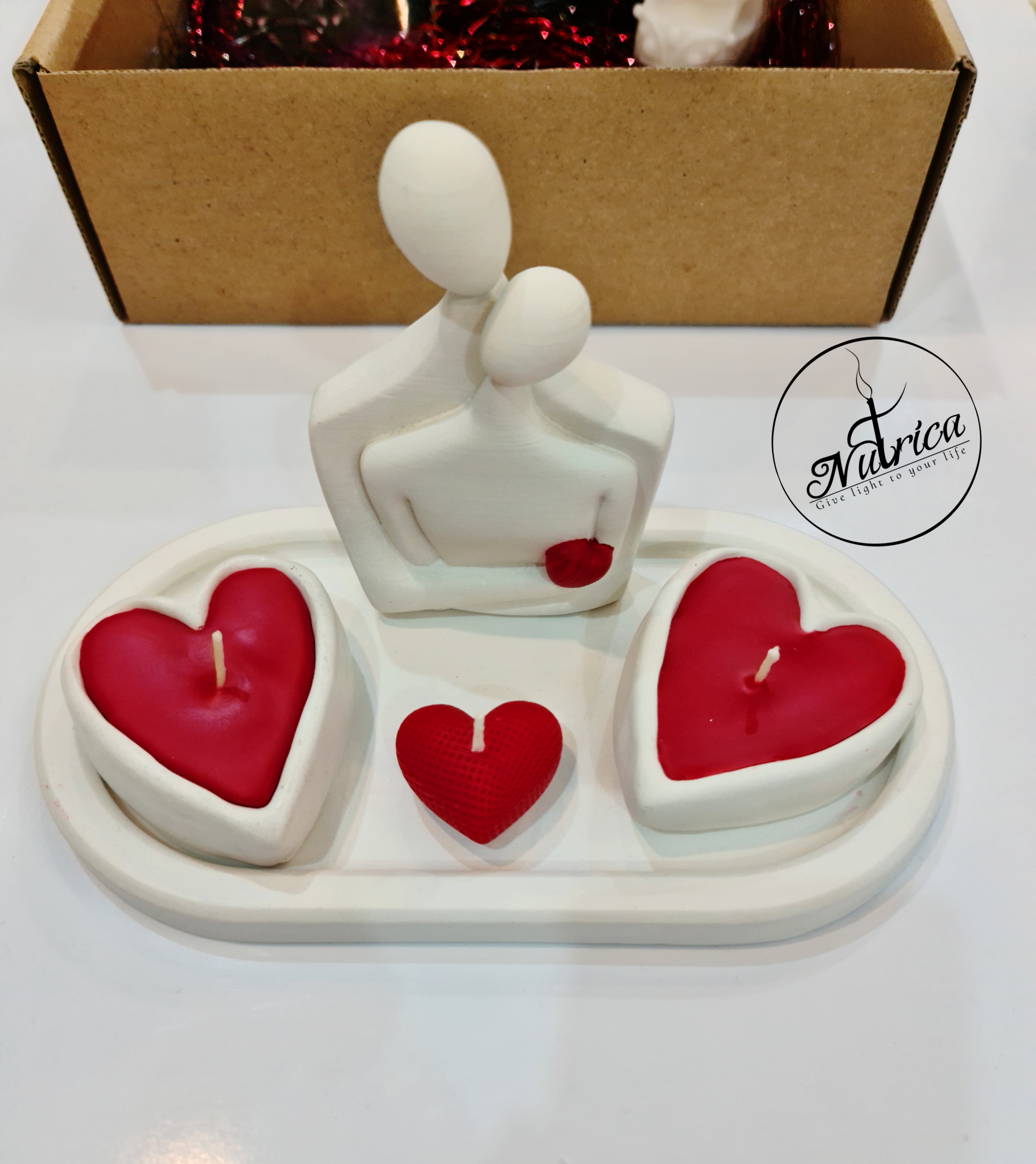 پک هدیه ولنتاین شامل شمع قلب سنگی و مجسمه آغوشی